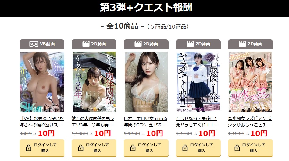 FANZA動画10円セール第3弾&シークレットは2026年3月2日(月)昼10:00から3月4日(水)朝9:59の3日間限定で開催されました。